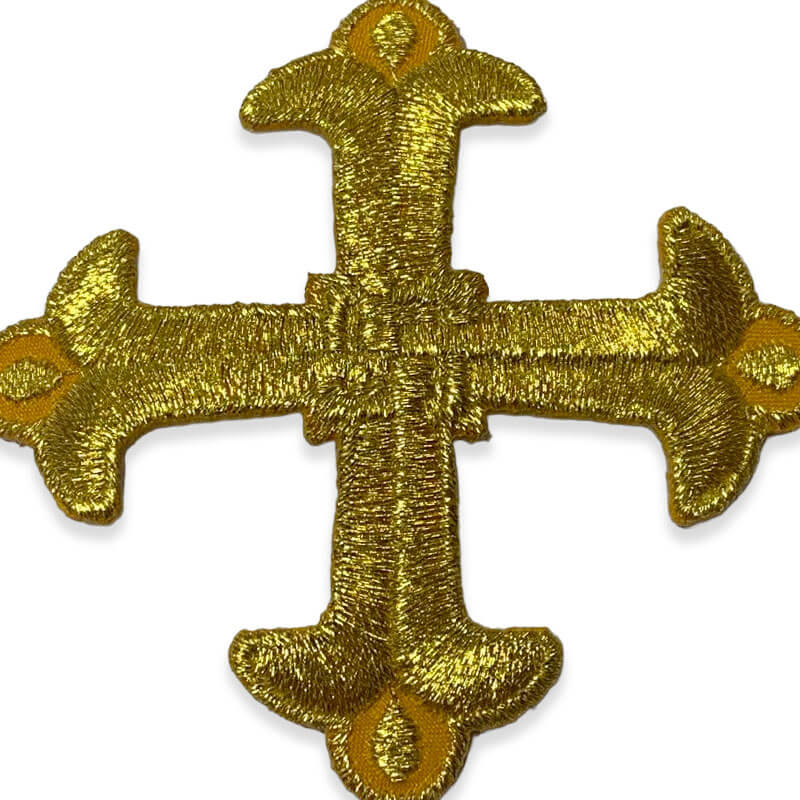 Aplique Bordado Cruz Ornamental 7 cm Oro / Oro Viejo
