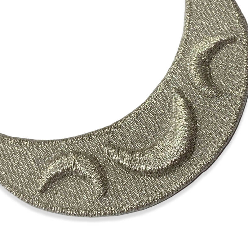 Este aplique bordado en forma de luna de 6,5 cm en color oro viejo es un elemento decorativo ideal para aportar un detalle elegante y distintivo a diferentes prendas y proyectos de costura. Su diseño curvado inspirado en la forma de una luna crea un efecto visual delicado que destaca sobre distintos tejidos.